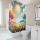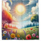 Ein traumhaftes Grasfeld mit Wildblumen, Bäumen, flauschigen Wolken, Sonne und Mond.