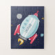 Buntes retro inspiriertes Raumschiff, Mond und Sterne entwerfen durch Shelby Allison