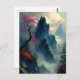 Schöne majestätische, traumhafte und mickrige Berglandschaft mit Bäumen auf einer Postkarte.