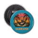 Cooler Tropical Escape-Flaschenöffner der Katze: Eine schwarze Katze mit Sonnenbrille und ein hawaiianisches Shirt, in einer Hängematte zwischen zwei Palmen, mit einem Retro-Sonnenuntergang im Hintergrund.