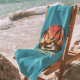 Cooles Strandtuch von Cat's Tropical Escape Beach : Eine schwarze Katze mit Sonnenbrille und hawaiianischem Shirt, die in einer Hängematte zwischen zwei Palmen und einem Retro-Sonnenuntergang im Hintergrund sitzt.