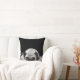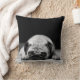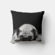 Schwarz-Weiß-Foto eines sehr bezaubernden kleinen Mops mit seelenbraunen Augen.