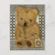 Dieser arme, alte Vintage Teddybär scheint ein wenig abgetragen und am Rand abgewinkt zu sein, aber er gibt ihm freie Schläge, wer ihm eine Zuhause gibt. Mit meinem original digital bemalten Bärenbärchen-Set vor einem gemusterten Retro-Hintergrund ist dies eine Postkarte für Teddysammler oder solche, die einem traurigen niedlichen Gesicht einfach nicht widerstehen können.