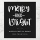 Feierliche Merry and Bright, Wein Flaschenschilder für den Urlaub. Design-Features, skurrile weiße Feiertagstypografie zitieren auf schwarzem Hintergrund. Zwei Textzeilen für Ihre Nachricht und Namen.