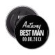 Trauzeuge Gastgeschenk Hochzeit für Trauzeugen kundenspezifische Magnetflaschenöffner. Personalisiert danke und Geschenke von Bräutigam bis Trauzeuge. Ideal, um besondere Freunde und Familienmitglieder fragen. Geben Sie Ihren eigenen Namen und das Heiratsdatum ein. Moderne, schwarz-weiße Typografie-Designvorlage.