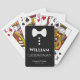 Dieses lustige Kartenspiel ist als Geschenk für Hochzeitsgäste gedacht. Die Rückseite ist schwarz mit einer weißen Krawatte und Tasten. Der Text ist weiß und lautet "Trauzeuge" mit einem Platz für seinen Namen, den Namen des Ehepaares und das Hochzeitsdatum. Ein großes Geschenk, um ihm dafür zu danken, dass er ein Teil deiner Hochzeitsfeier war.