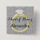 Trauzeuginrevers-Buttonknopf ist ein nützliches Werkzeug für das Helfen der neuen Familienmitglieder erkennen, wem im Hochzeits-Party ist. Eleganter grauer Damasthintergrund mit Goldsolitaire-Diamantringgraphik und extravagantem Skripttext.