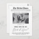Wenn es Zeit für Ihren Trauzeugin-Vorschlag ist, ist diese trendige Newspaper Postcard das perfekte Gefühl. Mit dem Text "Werden Sie meine Trauzeugin sein?" in einem minimalistischen Schwarz-Weiß-Stil mit dem Masthead "The Bridal Times". Behalt dieses Foto oder tausche es gegen eines deiner eigenen! Dieses elegante Design verleiht Ihrem bridemaid Vorschlag eine persönliche Touch. Einfach mit dem Namen Ihres Freundes und einer persönlichen Nachricht anpassen.