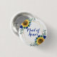 Dieser "Made of Honor"-Knopf zeichnet sich durch ein modernes, geometrisches Design aus, mit Aquarellsonnenblumen und blauen Rose mit Blattwerk. Es sind auch passende Brautparty-Elemente verfügbar. Bitte besuchen Sie unser Geschäft, um das komplette Sortiment zu sehen.