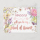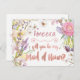 Wunderbar romantischer und weiblicher Blumenrahmen für diese wichtige Frage: "Werden Sie meine Trauzeugin sein?" Rose goldene Kalligraphie-Bürste und Aquarellfarben-Blume zieren diese hübsche Postkarte. Die Rückseite hat einen speziellen Kalligraphieadressbereich.