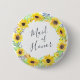 Identifizieren Sie die Hauptakteure in Ihrem Brautparty mit unseren rustikalen, bunten Tasten. Button zeigt einen Blumenkranz in Aquarellfarben mit gelben Sonnenblumen und blauen Wildblumen, wobei "Trauzeugin" in handgeschriebenen Schriften eingeschrieben ist. Entworfen, um unsere Blumenfelder Kollektion zu ergänzen.