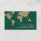 Modern dark-green professional card with name (manuscript font style) and custom travel related occupation (travel agent) and the image of a faux sepia gold map of the world... and templates for address, email and phone at the back...
