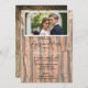 Eine wunderschön rustikale Hochzeitseinrichtung mit einem nahen Baumrink auf der Kartenrückseite. Die natürliche Struktur der Rinde und das warme Licht schaffen eine romantische und bezaubernde Atmosphäre, die perfekt für Hochzeiten im Freien oder im Wald geeignet ist. Auf der Vorderseite der Karte befindet sich ein weißes Gradientenblatt. Das Design schön und schön machen.