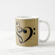 Dieses Composite Bass Clef und Treble clef musikalisches Herz-Design wird auf einem Vintagen Notenhintergrund präsentiert, die leicht entfernt werden können und durch jede beliebige Lichtfarbe ersetzt werden können. Die Tasse des Kaffees ist ein nachdenkliches Geschenk für jeden Musikliebhaber, Musiker, Musiklehrer oder Musikstudenten.