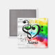 This composite bass clef and treble clef musical heart design is presented over a rainbow watercolor sheet music background. Personalized magnet makes a thoughtful gift for any music teacher, composer, music student, singer, songwriter, music lover, DJ, or musician. Display this music themed magnet any time you want to share your appreciation for music. Customize with a name, musical instrument, or any other text. Design tip: Size and position text to float pleasingly in the space below the heart image.