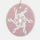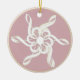 Rose Gold mit einer Goldgrenze. Personalisieren Sie die Rückseite dieses Ornaments mit einem Namen oder einer Nachricht. Treble Clefs bilden ein Schneeflockenmuster.