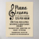Treble Clef, Keyboard, Piano Lektionen Werbeplakat vom Business Card Store.