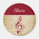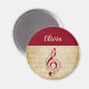 Ein wunderschöner, personalisierter Musikmagnet mit einem roten Treppenkleber mit Musiknoten in einem Spiralteam, auf einem Vintagen beigen KlavierNotenhintergrund. Ein großartiges Geschenk für Band, Orchester oder Musiklehrer, Musikstudenten oder alle, die Musik mögen!
