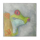 Niedlicher Treefrog, der hinter einem Stumpf den Kopf herausstößt. Der hellgraue, texturierte Hintergrund schafft eine sumpfige Atmosphäre. Geschehen in Aquarellfarbe.