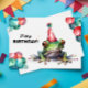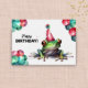 Diese Geburtstagskarte zeigt eine einzigartige und originelle Illustration eines Aquarellfrosches, der einen festlichen Party trägt und mit bunten Geburtstagsballons gefüllt ist. Die farbenfrohe Frosch-Geburtstagskartenillustrierung bringt ein lebendiges und auffälliges Element in die Feier. Diese Grußkarte eignet sich ideal für Zoofans oder alle, die die lebhafte Gegenwart von Baumfroschen genießen. Sie ist eine wunderbare und unvergessliche Möglichkeit, Ihre herzlichsten Geburtstagswünsche zu erfüllen und der Feier eine Touch des Naturcharmes zu verleihen.