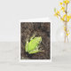 Diese Karte zeigt eine Reproduktion meiner Illustration eines Baumfrosches (auch: Pazifischer Chorfrosch) an der Rinde eines Baumes. Das Original zeichnete in Tinte, Aquarellfarbe und Farbstift.