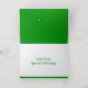 Diese Green-Folie-Karte ist eine großartige Möglichkeit, fröhliche Weihnachtsgrüße zu schicken. Die Karte zeichnet sich durch ein modernes Baum-Design aus und wird in echter Goldfolie dargestellt. Passen Sie Ihren gewünschten Text auf der Vorderseite und eine spezielle Nachricht in der Karte an. Verwenden Sie die Vorlage zum Personalisieren.
