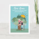 Niedliche neue Zuhause-Grüße-Karte mit einem Baumhaus mit Schaukel, gegen einen blauen Himmel mit gelber Sonne - Karten von Ricaso