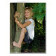 Kleines Mädchen klettert auf einen Ahornbaum.