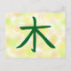 Eine schöne Postkarte mit dem Kanji für Baum. Die Bedeutung des Kanjis liegt auf der Rückseite der Postkarte.