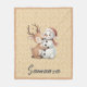 Tree pattern reindeer snowman orange beige name fleecedecke
