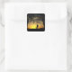 Tree Silhouette von Mann und Hund bei Sonnenunterg Quadratischer Aufkleber