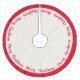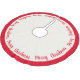 Weihnachtsbaum-Rock Holiday Baum Rock ist in einer Elfenbeinfarbe und rot mit rotem Text von Frohen Weihnachten geschrieben in Drehbüchern, die den ganzen Weg um den Baum Rock mit einer festen Farbe Rahmen.