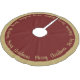 Weihnachtsbaum-Rock Holiday Baum Rock ist in einer bordeauxroten und matten goldenen Farbe mit mattem goldfarbigen Text von Frohen Weihnachten geschrieben in Drehbüchern, die den ganzen Weg um den Baumrock mit einem festen Farbrahmen.