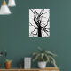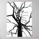 Dieses schöne Kunstposter zeigt ein künstlerisches, abstraktes Schwarz-Weiß-Muster auf der Spitze eines Tulpenbaums im Winter mit bloßen Zweigen in der Silhouette.
