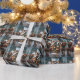 This festive design captures the joyful spirit of the holiday season, featuring an adorable dogs.Nestled in a winter wonderland, complete with a decorated Christmas tree, and beautifully wrapped presents. Snowflakes gently fall, adding a magical touch to the scene, while the vibrant colors of the holiday decorations create a warm and cheerful atmosphere.