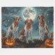 Entfesseln Sie den unheimlichen Geist mit diesem unheimlichen Halloween-Design, das eine Hundepackung unter einem dunklen, mondbeleuchteten Himmel bietet, umgeben von fliegenden Fledermäusen und glühenden Kürbissen. Ideal für diejenigen, die mit ihren wütenden Freunden eine Touch voller Furcht Liebe haben!