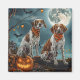Entfesseln Sie den unheimlichen Geist mit diesem unheimlichen Halloween-Design, das eine Hundepackung unter einem dunklen, mondbeleuchteten Himmel bietet, umgeben von fliegenden Fledermäusen und glühenden Kürbissen. Ideal für diejenigen, die mit ihren wütenden Freunden eine Touch voller Furcht Liebe haben!
