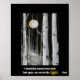 Weiße Birkenbäume und Vollmond auf schwarzem Hintergrund mit Touchs aus Orange und Gold bilden einen wunderschönen Rahmen für Rumis inspirierende Poesie.