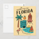 Entfliehen Sie dem "Sunshine Staat" mit dieser bezaubernden Postkarte 'Meet Me in Florida', die eine wunderbare Sammlung von Florida-Ikonen in einem lustigen Doodle-Stil bietet! Diese skurrile illustrierte Postkarte vereint die berühmten Strände des Staat, tropische Tierwelt und Innovationsgeist. Es präsentiert alles von einem klassischen Space Shuttleservice über einen anmutigen Flamingo bis hin zu einer Sandstrandszene mit Segelboot, einer lebhaften Orange und einem Hotel. Die spielerischen Illustrationen und die klare Schrift machen diese Postkarte zu einer einzigartigen und unvergesslichen Hommage an Florida, USA