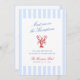 Die Bachelorette-Suite "Meet Me in the Hamptons" ist eine gemütliche, an der Küste inspirierte Kollektion, die den mühelosen Charme einer Ozeanfeier einfängt. Die Suite mit prächtigen, pulvrigen blauen Streifen, eleganter Schriftzypografie und einer kühnen, roten Hummerillustrierung Set den Ton für einen nautisch-schicken Aufenthalt. Ideal für eine Meeresfrüchte, kombiniert diese Kollektion die Eleganz der Ostküste mit einem spielerischen Ambiente am Strand - ideal für Brautpaare, die im Stil eines Rosé brunchen, sonnen und schlürfen.