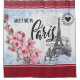 Dieser wunderschöne Duschvorhang wird Ihr Badezimmer noch schöner machen! Hier finden Sie den Eiffelturm, Kirschblüten und den Satz "Treffen Sie mich in Paris". Sie finden auch eine simulierte Portografie-Briefmarke, die "Made with Liebe" mit einem Herz in der Mitte und einem hübschen roten Rand oben und unten lautet.