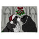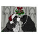 Wunderschön handgezeichnete und farbige Welpenhunde, die sich unter dem Mistleton küssen