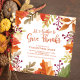 Erntedank-Dinner Einladung mit einer Hand schöne Aquarellblätter Herbst Blätter "lasst uns sammeln, um Dank zu geben" in einem handgeschriebenen Schriftart. Dreh unserem Erntedank Einladung zu einem koordinierenden Rücken für eine besondere Touch.