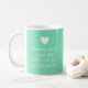 Stilvolle und persönliche Touch mit unserer angesagten Minty Green Customizable Tasse. Einerseits nimmt Ihr Name die Bühne in einem eleganten Skript-Schriftart für ein einzigartiges und raffiniertes Aussehen. Auf der anderen Seite begrüßt Sie die herzliche Botschaft "Einen schönen Tag voller Freude und Positivität wünschen!", die mit einem Herzsymbol geschmückt ist und Ihrem Tag eine Touch Wärme verleiht. Diese nachdenkliche Nachricht ist ebenfalls anpassbar, sodass Sie sie nach Belieben behalten, ändern oder entfernen können. Diese Tasse ist ein perfektes Geschenk oder eine reizvolle Ergänzung zu Ihrer eigenen Kollektion. Es ist eine ideale Wahl für Freunde, Familie und Kollegen zu verschiedenen Anlässen wie Geburtstag, Feiertage, Muttertag, Vatertag, Feiern oder einfach nur, um jemandes Geister zu stärken. Mit dieser charmanten und vielseitigen Tasse, die für Momente der Freude und der Verbundenheit konzipiert ist, steigern Sie Ihren Morgen und verbreiten Sie Positivität. Entdecken Sie unsere Herbst- und Winterfarben für andere Produkte mit der gleichen Farbe oder mischen Sie und passen Sie mit anderen stilvollen Trend-Trend-Farben zu Ihrem einzigartigen Stil.
