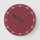 Trend Farbe dunkle Krimson Rot. Moderne und stilvolle, solide farbige Rund-Uhr mit weißen Punkten Minute und Stunde Marker. Ideal, um der Wohngestaltung einen Farbtupfer hinzuzufügen. Einfaches und sauberes Design mit kräftigen Farben für eine zeitlose Optik. Laden Sie unsere Herbst- und Winterfarben für andere Produkte mit der gleichen Farbe oder anderen stilvollen Trend-Trend-Farben ein.
