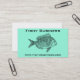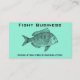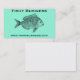 Eine stilvolle und angesagte Visitenkarte für jede Art von Geschäft mit einer wissenschaftlichen und detaillierten Vintagen Schwarz-Tinte-Abbildung eines Ozeanfisches vor einem anpassbaren aqua-blauen Hintergrund. Der Text ist vollständig anpassbar. Dieses trendige Meeresmeer-Design wäre perfekt für alle Fischgeschäfte, Aquakultur, Meeresfrüchte oder Meeresfrüchte.