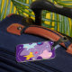 Trendfarbene abstrakte Muster in lila und blauen F Gepäckanhänger