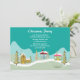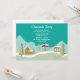 Dieses 12x18 Weihnachts-Party laden mit grünen trendigen Weihnachtsbäumen und einige Nachbarhäuser mit Schnee bedeckt unten mit Ihren personalisierbaren Party-Informationen an der Spitze. Design von Riefka Design