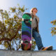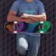 Auf schwarzem Hintergrund ist diese kühne, lebendige Illustration eines Drachen in Grün, Blau, lila, Rosa und Rot. Ein einzigartiges Design und Geschenk für den Skateboarder in Ihrem Leben, oder als dekorative Kunstwerke.