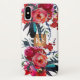Luxuriöses, elegantes und glamouröses gemustertes iPhone Gehäuse mit böhmisch blütenrosa und roten Peony-Blume und blühenden Bouquets mit blauem Blattwerk aus Marineblau und einer quadratischen Metallic Kupfer Monogramm Initialen. Ideal für Geschäftsfrauen | Makeup artist | Friseurin | Mode-Stylist | Zuhause Innendekorator | Designer | Architekt | Florist | Eigentümer der Boutique | Kosmetikerin | fashionista — Matching Business Branding Materialien und Visitenkarten verfügbar. — Perfekte Wahl für einen eleganten, femininen, raffinierten Look. — Personalisieren Sie es mit Ihren Namen Initialen / Monogramm!